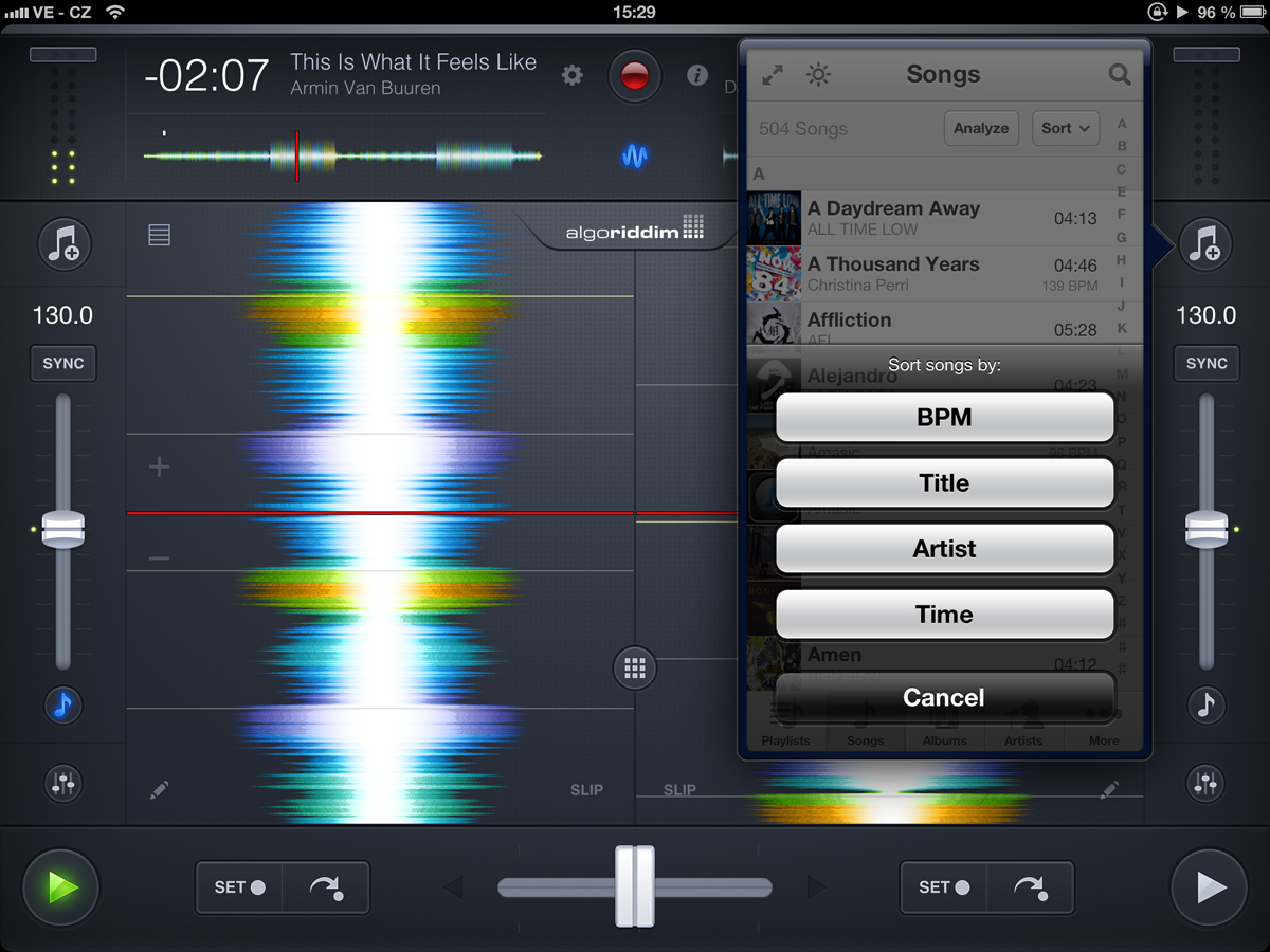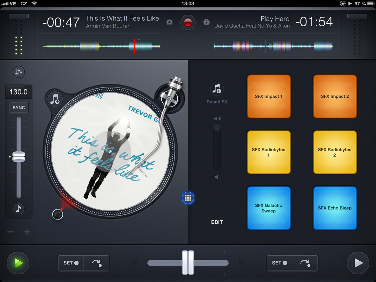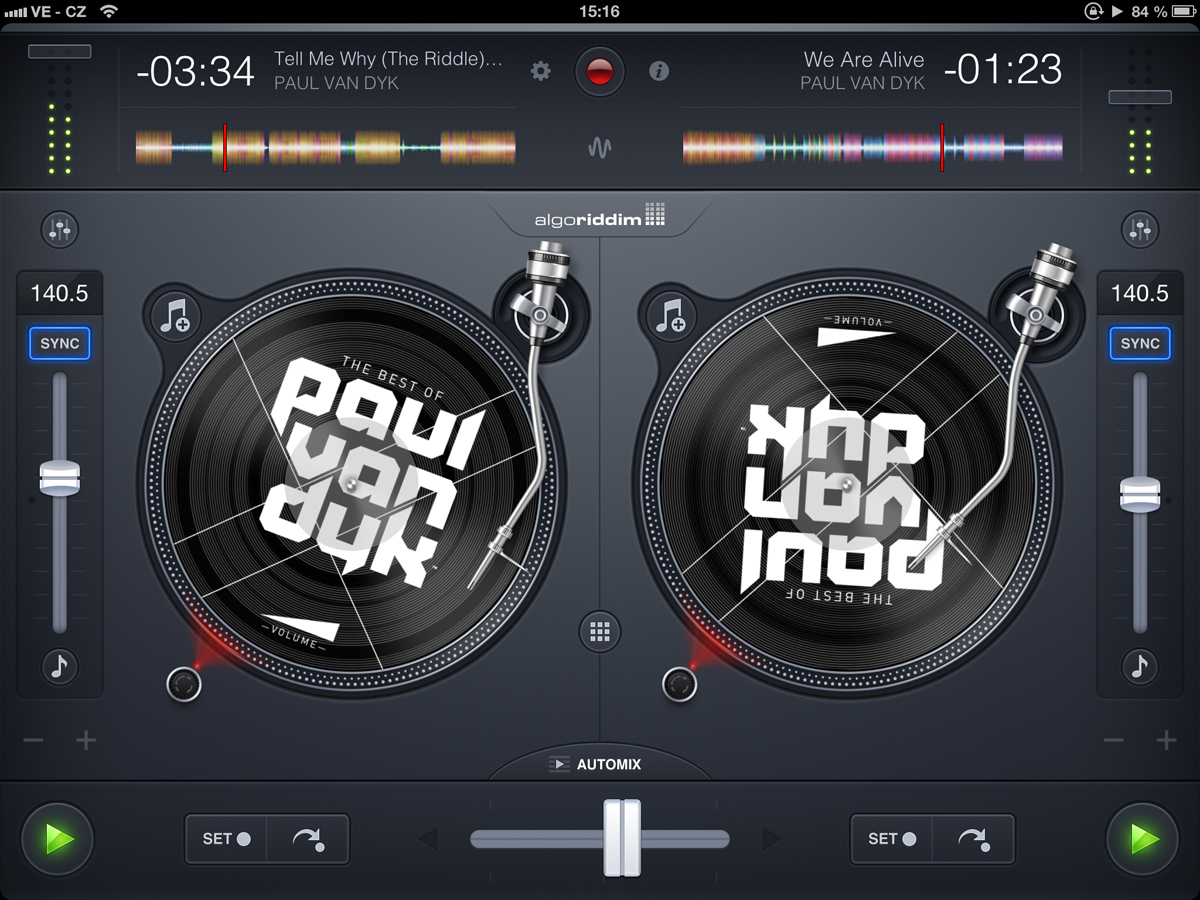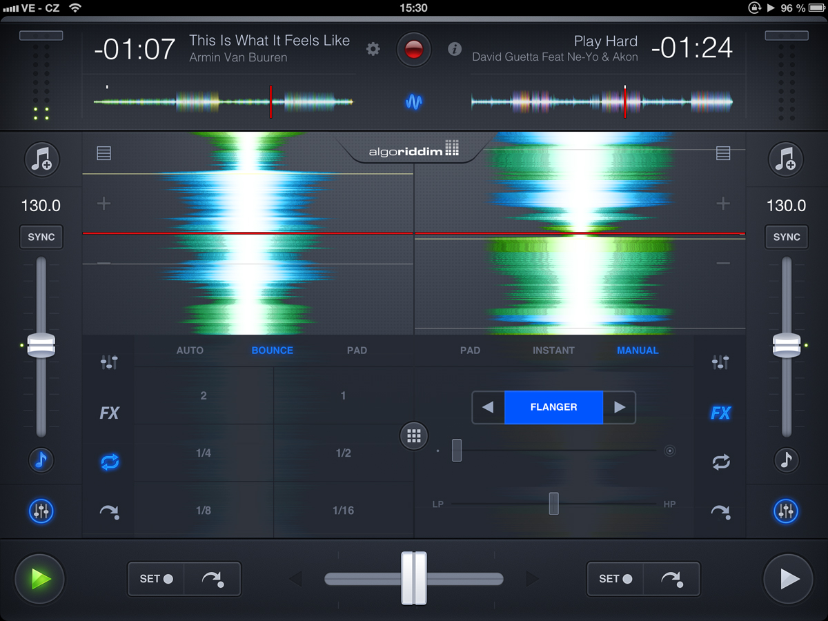 hlavní obrazovka djay 2 - režim s gramofony