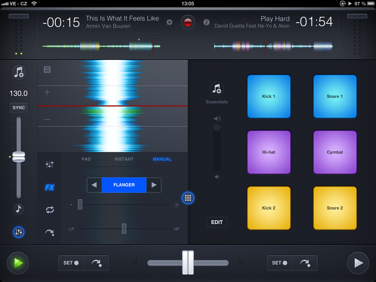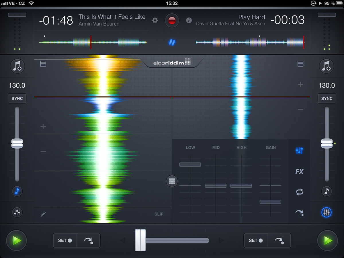 obrazovka djay 2 v režimu HD Waveforms