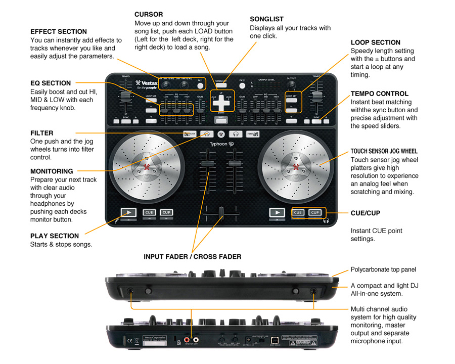 Home page » Photo galleries » ▇ Produkty koncové přístroje » Vestax Typhoon BLK DJ set