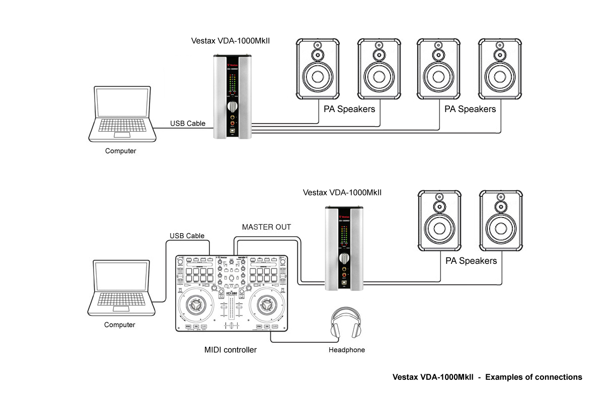 Vestax VDA-1000 MkII (příklady zapojení)