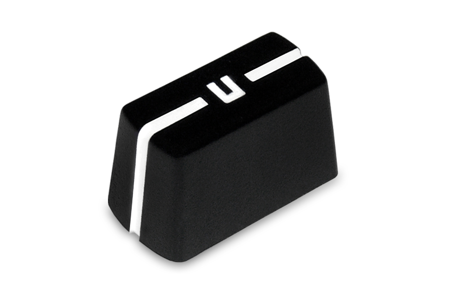 Original exclusive premium replacement knobs are designed for channel sliders faders or crossfaders of the Urei mixers 1601, 1601S, 1601E battle DJ mixers and Urei 1603 or Urei 1605 professional club mixers (Made by Soundcraft). The knob UKN SL-IFB is made of professional Styrol-Akrylnitril composite material; equipped high quality deep print white line with attribute abrasion resistant and print symbol "U" - typical feature of legendary products Urei faders. This type of knob are compatible with someone Vestax input channel faders or crossfaders. Very special vintage "Limited Edition".