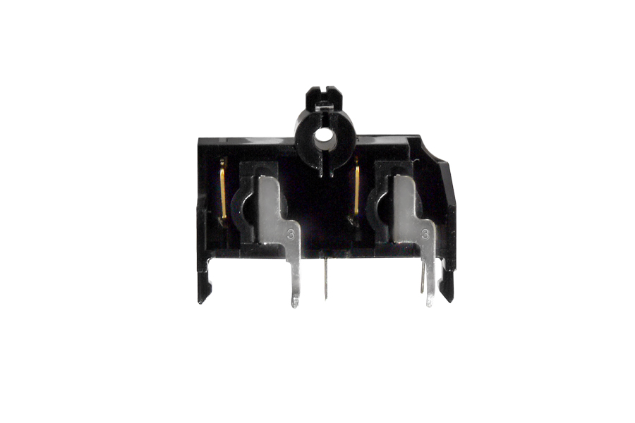 Original spare part - two-input RCA terminal socket (2-POLE CINCH connector nest) for soldering on PCB board. It is produced in several variants for specific Vestax PMC Series or PCV Series mixers. The different types of terminals differ from each other in the arrangement of the soldering points, the dimensions and the spacing of the fasteners. These are original Vestax japanese spare parts that are not interchangeable with similar parts from other manufacturers!