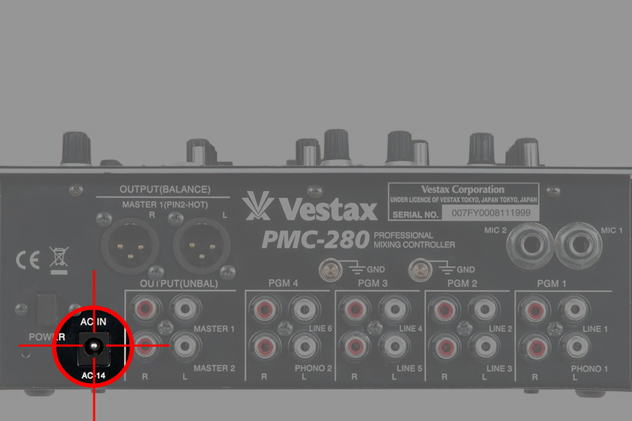 WARNING: Use only recommended original Vestax power supply. Use of others may damage the Vestax unit.