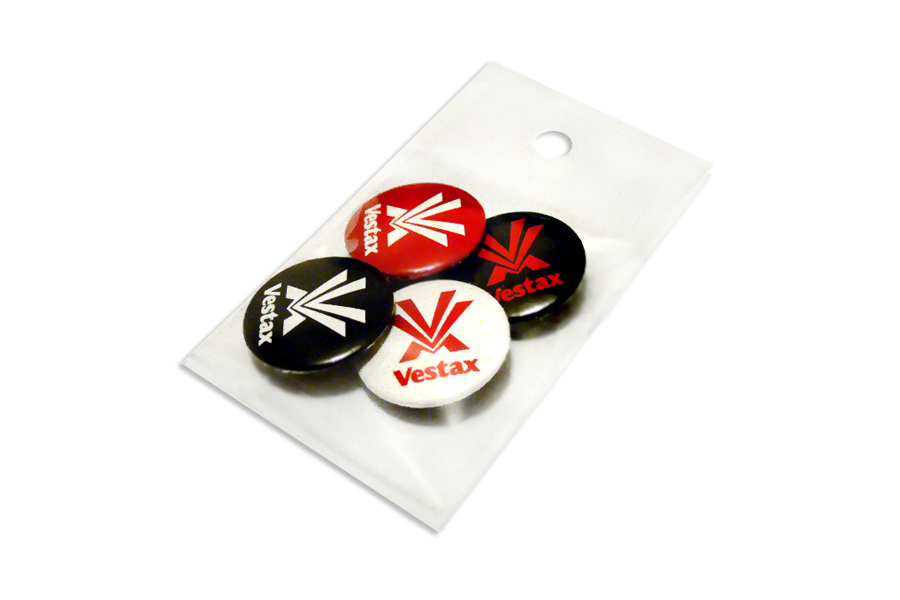 Set of 4 pcs branded badges, so-called "Vestax" badges. High-quality Pantone™ color sublimation printing with the Vestax logo in four combinations. The metal body of the badge, ø 25 mm, is equipped with a metal snap pin on the back for attaching the badge. The Vestax Buttons MIX package contains a total of four different types of Vestax badges with color combinations of the traditional logo of the Japanese brand. Packaged in a ZIP bag. Express your sympathy for the Japanese brand, show your own individuality, mood, attitude. You can wear the Vestax badge on a backpack, bag, sweatshirt, jacket, shoes, but also anywhere else. It depends only on you which part of yourself you decide to pierce..