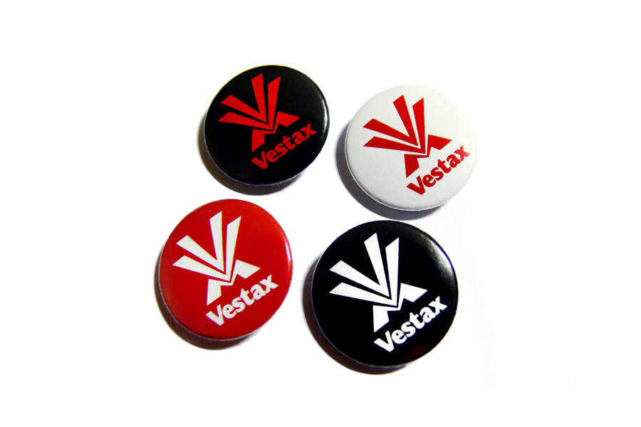 - set of 4 pcs branded badges, so-called "Vestax" badges / buttons