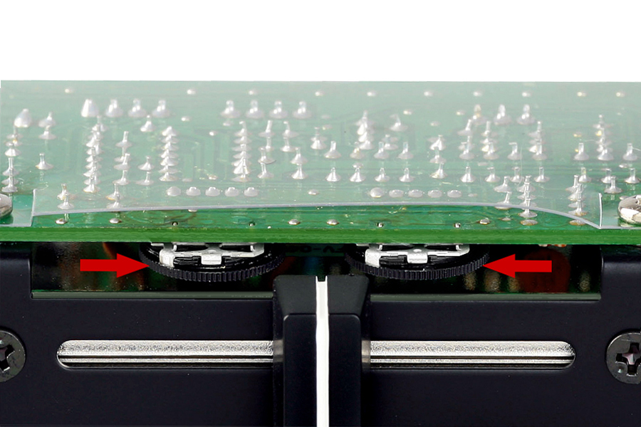 High-end professional  Vestax CF-CC PCV crossfader with CUT LAG SPACE CONTROL. Cut lag is the end point of the crossfader, where there’s a little gap that doesn’t play out sounds. Vestax has developed a special circuitry to control this cut lag space digitally. The CF-CC allows you to set both left and right cut lag spaces individually; depending on which hand you use the most, or to your personal preference. The fader is able to adjust via two dials, the cut-in time from the fader at OFF sound to when the fader is ON. It is a very small area of focus, but this is where the demand is and why DJs are in search for the sharpest fader on the market. This new technology will allow Scratch DJs and Mix DJs being able to perform to thier style and to suit their genre of music. PCV (Plastic Conductive Volume) technology is tested for 2 million passes / 1 million cycles by accredited testing laboratories. During this time, it must not lose the quality of the audio signal passing through it (to imagine, standard faders leave after about 100,000 cycles). These are the minimum guaranteed values. The CF-PCV SSF has a precision metal mechanism and guide shafts on which the fader slider moves and has a very precise position. This simultaneously reduces friction, resulting in less wear and smoother fader movement. It is designed for professional applications such as turntablism or professional club mixers. The CF-CC PCV Crossfader is compatible with the Vestax Mixing Desks PMC-05Pro, PMC-06Pro and PMC-07Pro Series