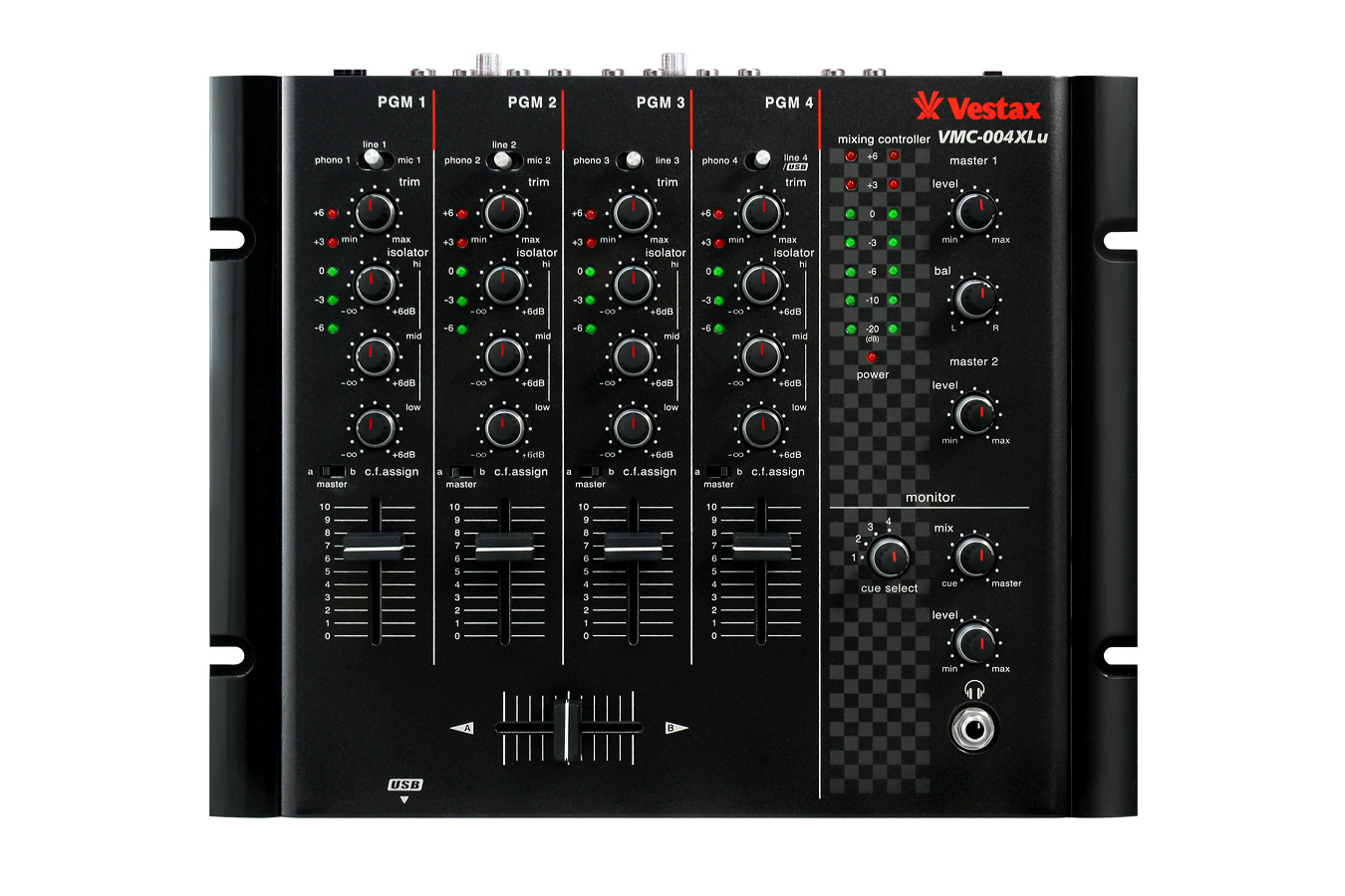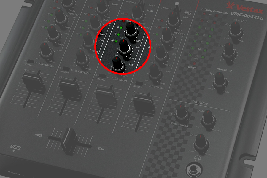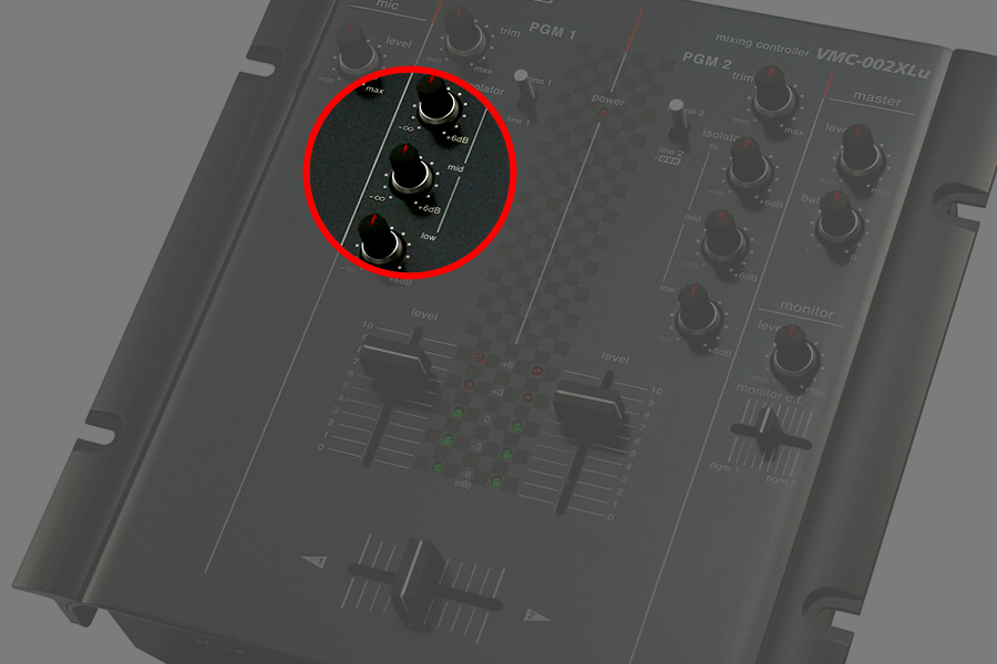 - ISO (EQ - each PGM channel equalizers LOW, MID, HI rot. faders)