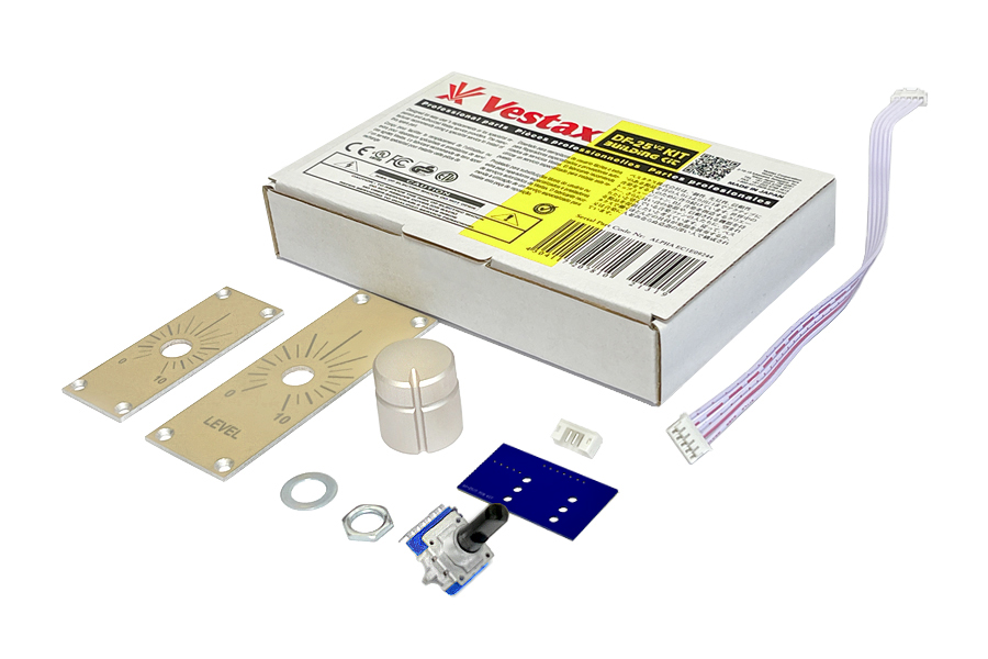 Building KIT - replacement original Japan DF-25 / DF-27 / DF-17 rotary fader KIT for professional mixers. This is building KIT, which you assemble yourself by soldering. KIT contains 1 pc high quality original ALPS™ / ALPHA™ Japan rotary fader, 1 pc faceplate, 1 pc large aluminum Vestax DF-500 Series knob, 1 pair of nut and pad for fixing ALPS™ rotary fader on top cover panel (faceplate), 1 pc Vestax PCB mainboard, 1 pc JST/PCB 5PIN 90°R angle connector, 1 pc FLAT cable with JST 5PIN straight connectors. Intended for experienced users only, this building KIT must be assembled by soldering. Assembly is not complicated, it only requires skill when working with solder.
