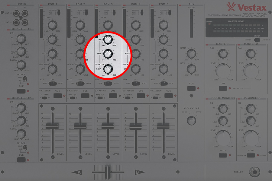 - BOOTH MONITOR Section: EQ (LOW / HI), LEVEL