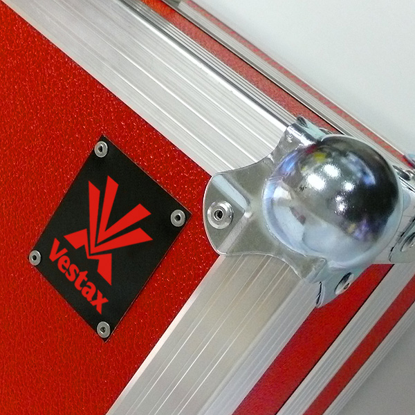 They are made of high-quality seven-layer oak plywood with a surface treatment (pressure-applied, mechanically resistant plastic foil in red Vestax logo) and have a very robust construction, the edges are protected by aluminum shaped profiles and the corners are equipped with protective round corners of 1.5 mm thick galvanized steel sheet. Case HC are equipped with powerful high-quality butterfly-type locks with a reinforced metal construction of the mechanism, an extrusion spring used for comfortable handling during unlocking and an eye for locking with a padlock. Cases are equipped with special spring handles, wrapped in plastic material, which adapts to the weight of the transported equipment and allows very comfortable transport of even heavier equipment, unlike competing products, which use ordinary rubberized handles, which are cut into the hands and work with them is not pleasant . The inside of the case is padded with Viscofoam® PUR foam filling, which serves to protect against mechanical damage to the transported device. The cases are also equipped with rubber 20 mm feet on the underside and have an aluminum label with the Vestax logo on the lid.