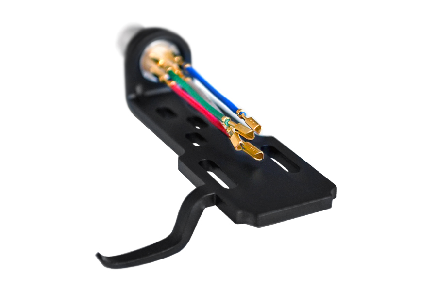 Vestax cartridge holders alias headshells are made of high-quality aluminum alloy and bear the traditional shaped logo "V" Ergonomic design with long finger stirrup for comfortable handling. Headshell are fitted with four flexible hybrid wire of pure silver and copper. This wire composition ensures the transmission of very clear high tones of the audio signal and contributes to brilliant sound. The wire ends are provided with terminals for connecting phone source; terminals are made of gilded rhodium. The Vestax Headshells is suitable for all ½ "mounts and of course for Vestax PDX Series turntables. They are manufactured in several color variations, from classic black and silver across the color spectrum to special fluorescent surface headshell Vestax HS-2 GID.