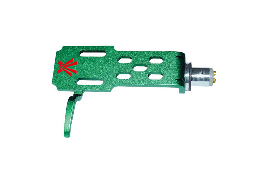 Vestax cartridge holders alias headshells are made of high-quality aluminum alloy and bear the traditional shaped logo "V" Ergonomic design with long finger stirrup for comfortable handling. Headshell are fitted with four flexible hybrid wire of pure silver and copper. This wire composition ensures the transmission of very clear high tones of the audio signal and contributes to brilliant sound. The wire ends are provided with terminals for connecting phone source; terminals are made of gilded rhodium. The Vestax Headshells is suitable for all ½ "mounts and of course for Vestax PDX Series turntables. They are manufactured in several color variations, from classic black and silver across the color spectrum to special fluorescent surface headshell Vestax HS-2 GID.