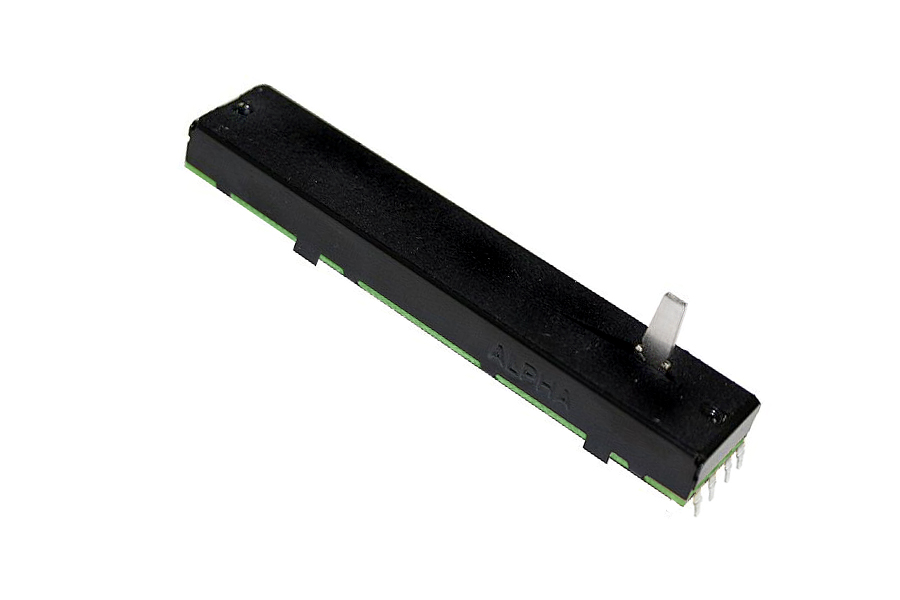 Input fader IF-06T SSF is a standalone channel input fader for the vintage Vestax PMC-06T Series mixing consoles. It is supplied without PCB for PCB soldering, it is not for easy user replacement and is primarily intended for authorized service repairs. The IF-06T RS SSF has a precision metal mechanism and guide shafts on which the fader slider moves and delimits a perfectly accurate position. This simultaneously reduces friction, resulting in less wear and smoother fader movement. It is designed for professional applications such as turntablism or professional club mixers.