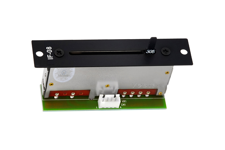 Input fader IF-08 PCV KIT with long life, omplete factory assembled KIT with PCB desk, JST connector and faceplate for fast and user-friendly exchange. IF-08 PCV KIT designed for Hybrid Digital mixer Vestax PMC-08 Pro Series. Vestax IF-08 PCV KIT can be easily replaced by the user, it is designed for power supply to the printed circuit board and mounting with screws to the rear cover panel of mixer. The state-of-the-art PCV (Plastic Conductive Volume technologie) technology is tested by accredited testing laboratories for 2 million passes / 1 million cycles. During this time, it must not lose the quality of the audio signal that passes through it (to give you an idea, standard faders leave after about 100,000 cycles). These are the minimum guaranteed values. The Vestax IF-08 PCV KIT input fader has a precise metal mechanism and guide shafts along which the fader slider moves and thus has a completely precise position. As a result, friction is reduced, which leads to less wear and smoother fader movement. It is designed for professional applications, such as turntablism or professional club mixing consoles.