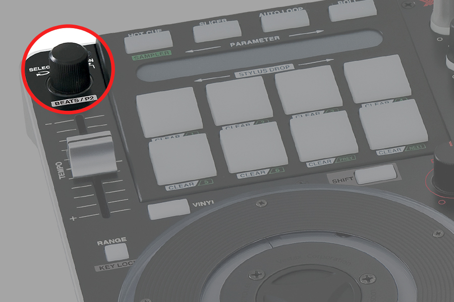 This knob designed also for next section of Vestax VCI-380: for PAD / FX Encoder. This unit designed for Adjust Beats Multiplier, click to toggle Slot 2 effect ON/OFF with shift function SELECT EFFECT. For details on the function options of this control, please refer to the User manual in section Manuals.
