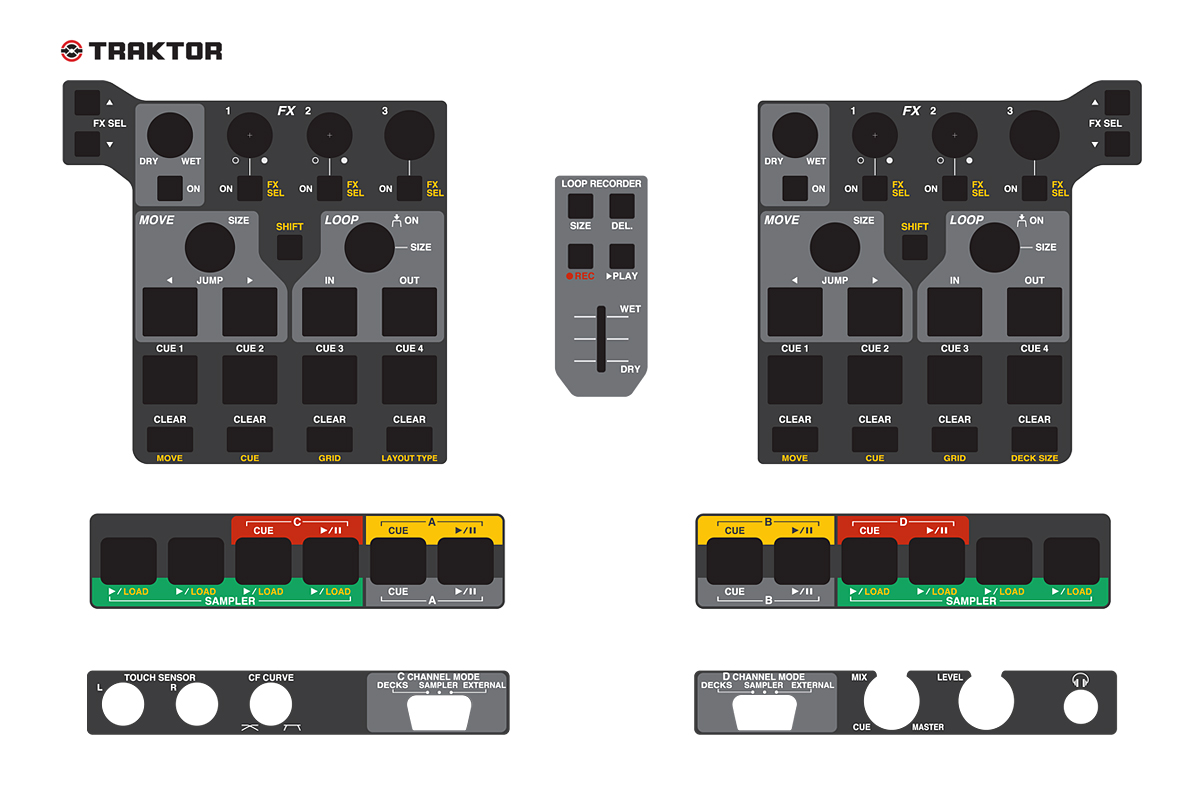 - top branded FP overlay label blanks made for the professional four-channel MIDI controller VCI-400