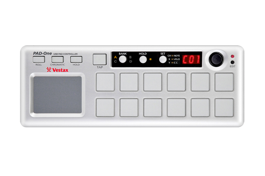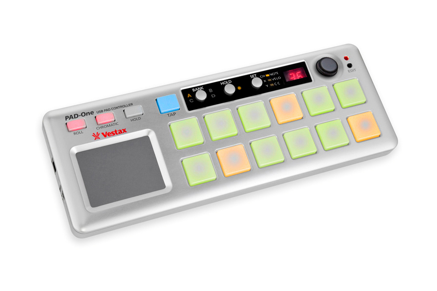 The Vestax PAD ONE is the most reliable professional PAD type MIDI controller you will ever experience. The anodized casing is compact, robust, reliable and built to live up to any heavy duty. The high-sensitive LED backlit silicon PADs convert your touch and pressure precisely into MIDI signals. MIDI settings, which needed to be edited in music software or MIDI edit software, is not needed with the PAD ONE. All MIDI settings can be changed directly whenever you wish, and by having MIDI messages sent during editing you can check which sample/parameter you are assigning on the fly too. The Vestax PAD-One professional controller is simply compact, solid, robust and reliable and is an ideal item for the arsenal of every musician or DJ. It can be used to control any MIDI device, including synthesizers, samplers, automatic drummers or electronic drums, as well as Vestax PDX Series turntables or other Vestax VCI Series MIDI controllers.view full description »