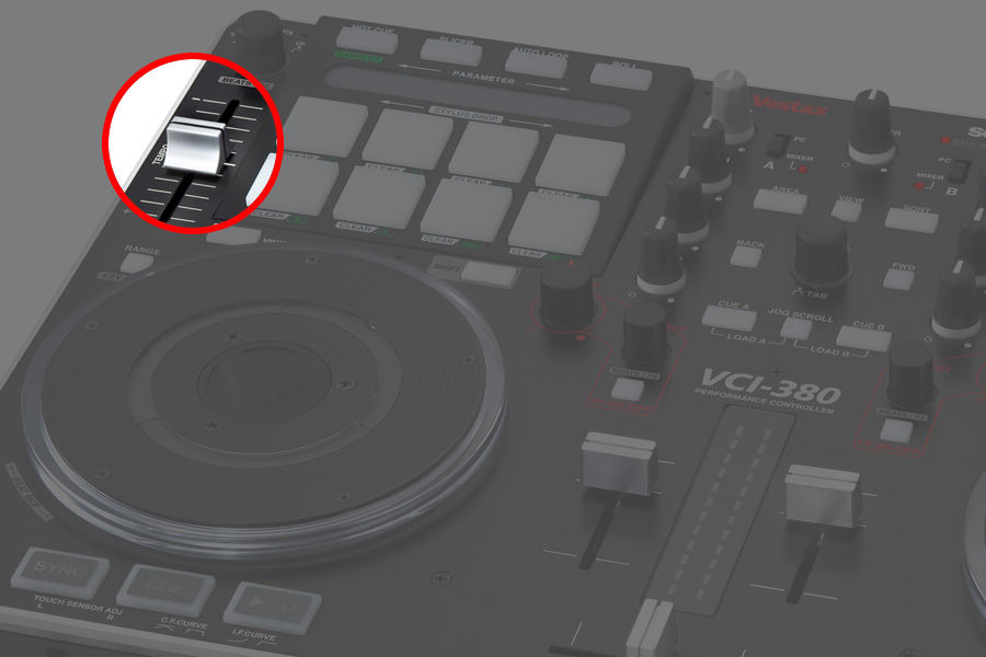 - spare pitch fader for basic regulation of the RPM / virtual deck speed TEMPO