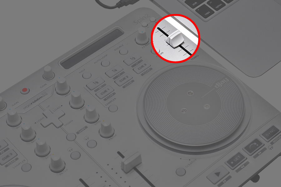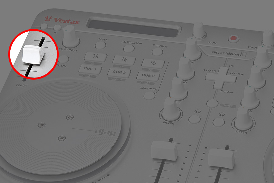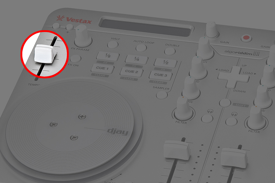 - spare pitch fader for basic regulation of the RPM / virtual deck speed TEMPO