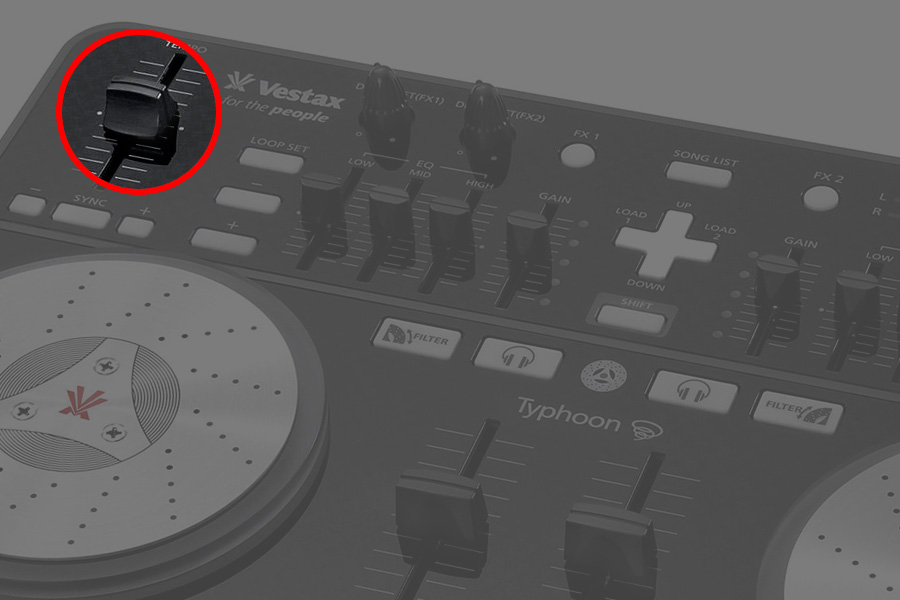 - spare pitch fader for basic regulation of the RPM / virtual deck speed TEMPO