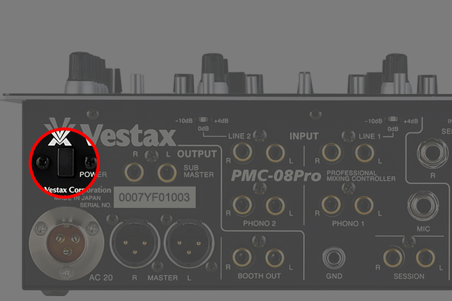 infoideaWARNING:  Use only original Vestax power switches. Use of others may damage the Vestax unit.