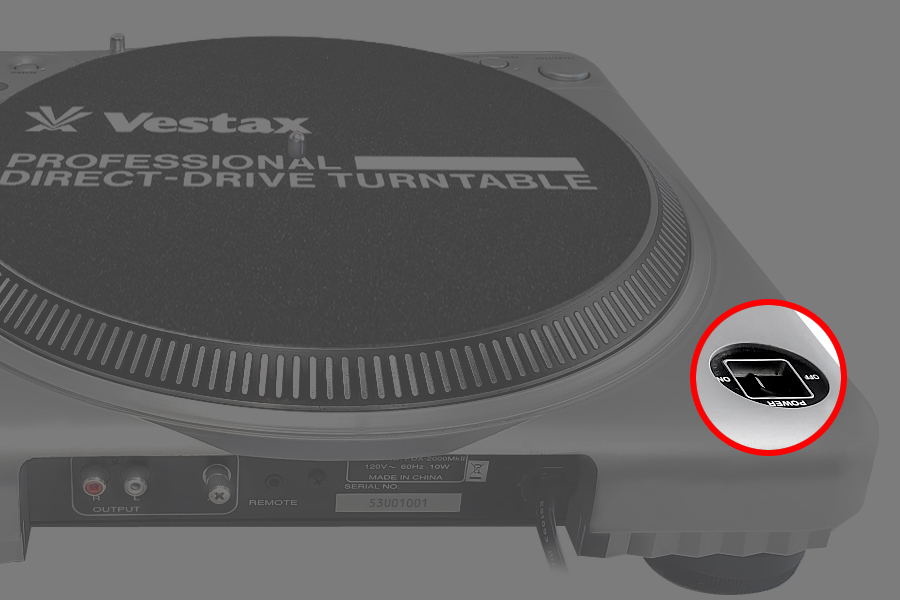 WARNING: Use only original Vestax power switches. Use of others may damage the Vestax unit.