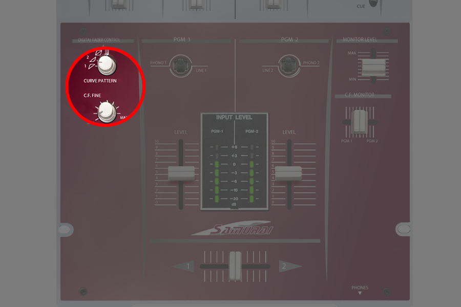 N O T I C E for PMC-07Pro D : The rotary faders RF-07A for Vestax PMC-07Pro D mixers are different for some sections and are marked with the symbol "D" after the slash (example: Vestax RF-07A CF FINE / D). Curve pattern rotary fader encoder / switch (code: CUR PAT) selects the crossfader curve pattern. Code CF-FINE designed for setting the control to minimum, the crossfader curve is most sharp,moving the control clockwise, towards max, gradually reduces the sharpness of the curve. Unless a slash with an addition is indicated after the type designation, the rotary faders are compatible with all variants of Vestax PMC-07 Series mixers.
