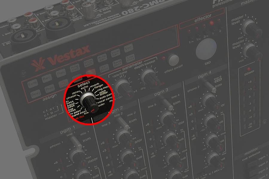 - intended for section FX CONTROLL / EFFECT SELECT, serves to select a specific effect