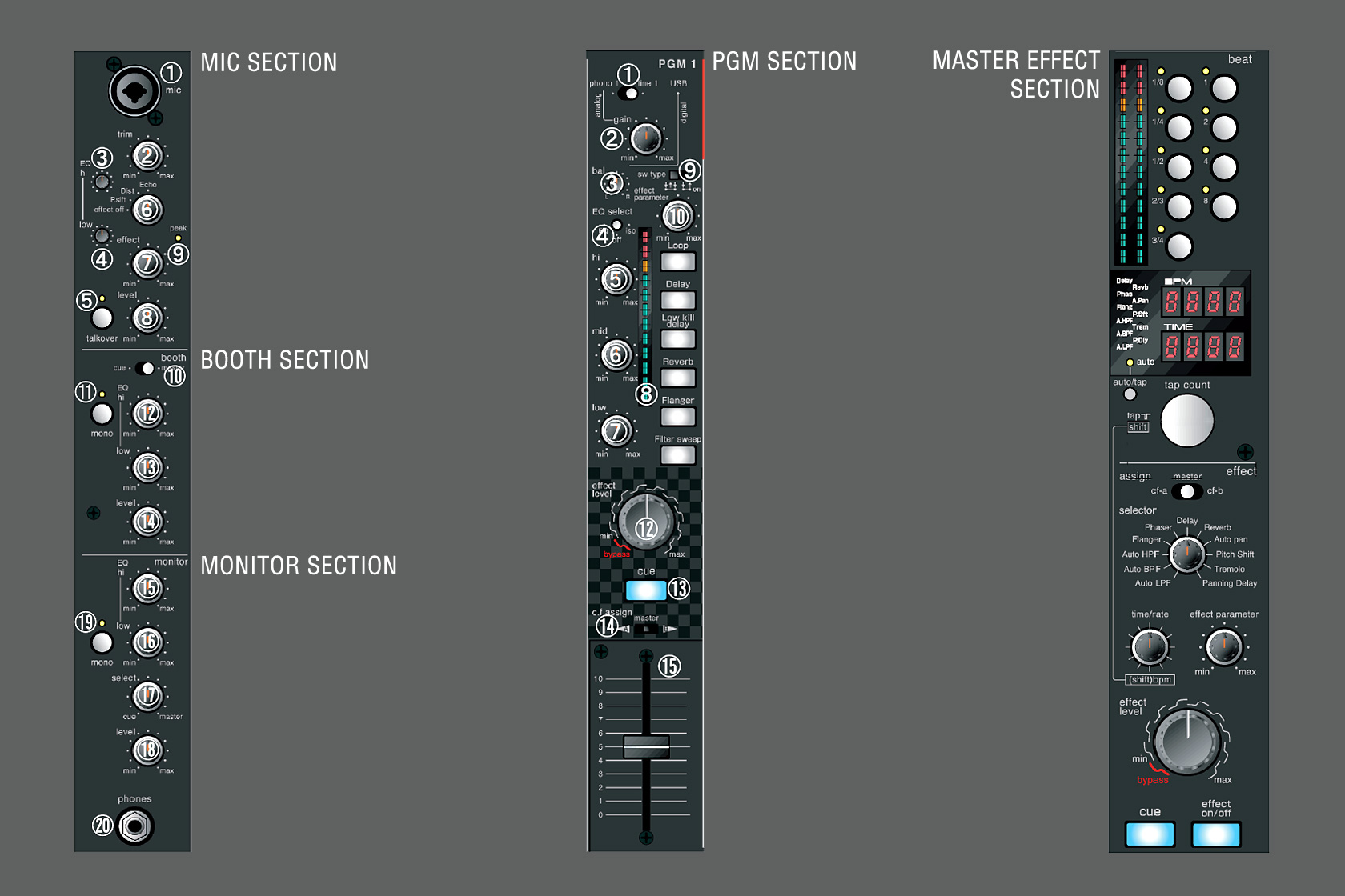 - MST EFF (MASTER Section: EFF ON/OFF push backlit)