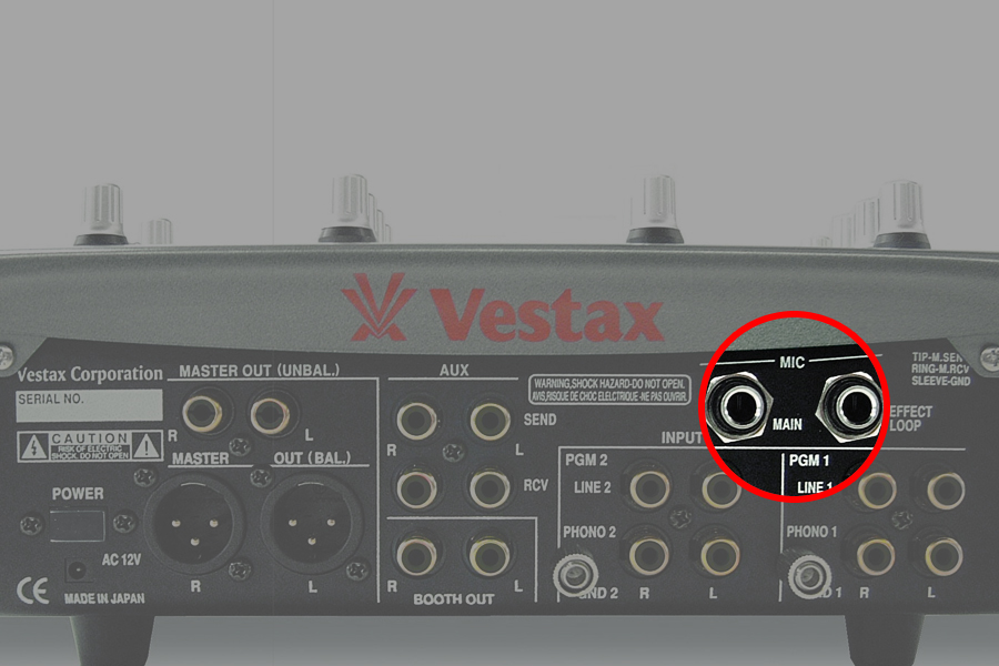 - single entry TS terminal socket (Jack 6,3 connector 2P pole / MONO) for audio inputs (MIC, SUB MIC)