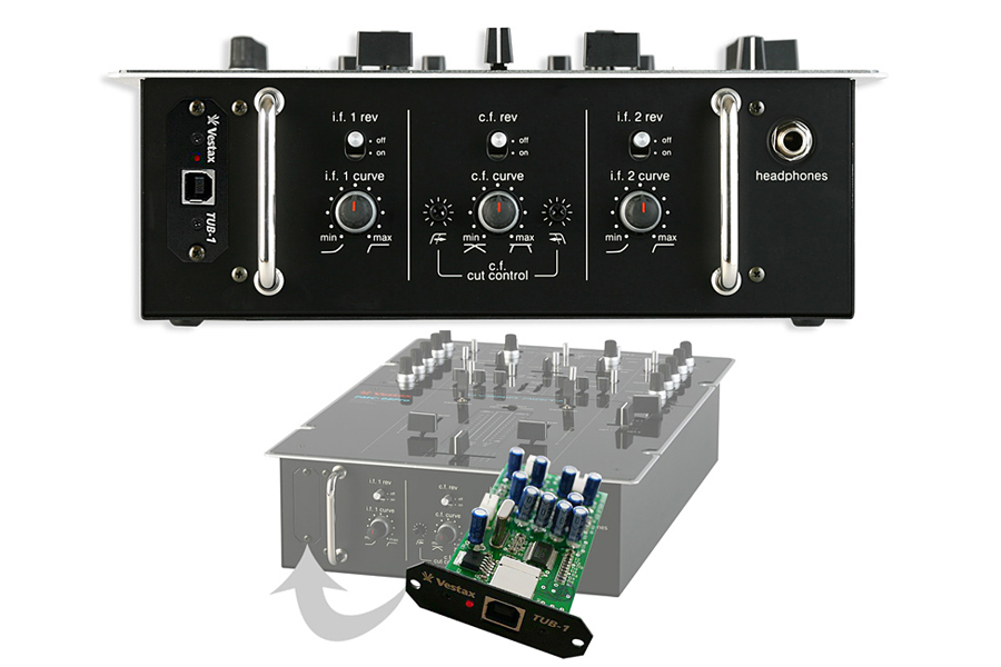 For mixing consoles Vestax VMC-002 / Vestax VMC-004 series and other models of Vestax mixers PMC-280, Vestax PMC-08Pro and Vestax PMC-05Pro Series, which are not factory-equipped with digital USB audio interface, there is a premium Vestax TUB-1, USB audio interface, which is actually an internal sound card for expanding mixing counters about the possibility of connecting to your PC / computer. The PMC series mixers are equipped with a slot for installing this sound card. For example, installing a Vestax TUB-1 sound card is very easy on Vestax PMC-280 consoles. For older Vestax PMC-08Pro Hybrid Digital mixers it is necessary to entrust this operation to a professional service. However, the new versions of the mixing consoles are already equipped as standard with an internal sound card with a USB interface. Including original AISO drivers. Check the manual for compatibility with your device (in section MANUALS).